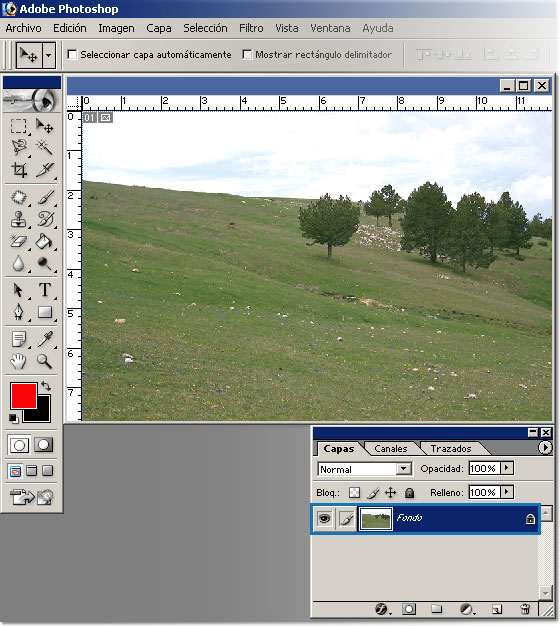 Abrimos la imagen paisaje_prado. Archivo > Abrir.
