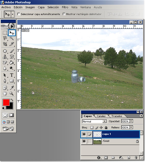 y vamos a la imagen paisaje_prado. Ahora hacemos Edición > Pegar,