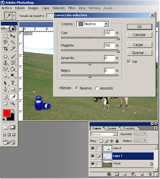 Ahora repetiremos todo el proceso con la imagen vaca. Haremos la selección,