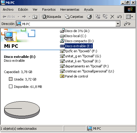 Ponga en marcha la cámara (en su ordenador, en “Mi PC” la cámara aparecerá identificada como “Disco extraíble (E:)”).