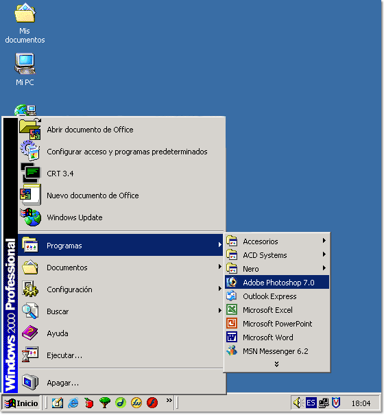 escogeremos la opción ”Adobe Photoshop 7.0”.