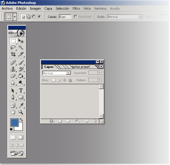 programa y nos aparecerá la interfaz de Photoshop 7.0. (Interfaz