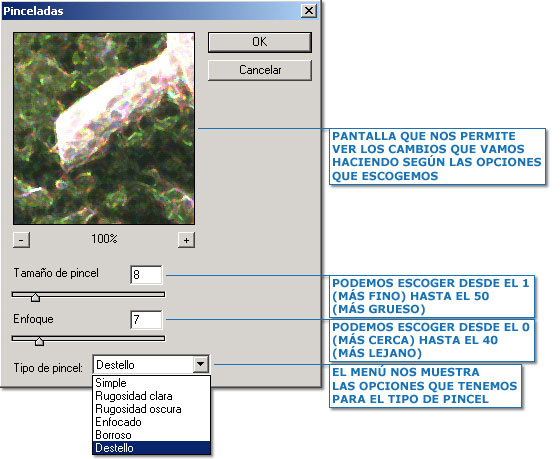 - Hacer clic sobre cualquiera de las opciones que aparece. Nosotros escogemos “Pinceladas” y