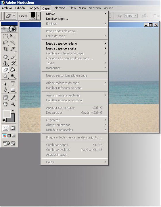En la barra de menús encontramos la opción “Capa”.