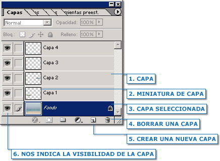 - Capa seleccionada:es la capa con la