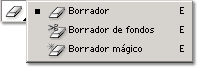 Cuando hacemos clic en la flecha inferior de la herramienta se despliegan las opciones de la herramienta borrador.