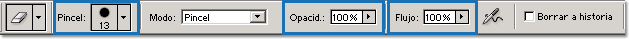 La herramienta de borrador tiene la misma barra de opciones que el pincel. Podemos