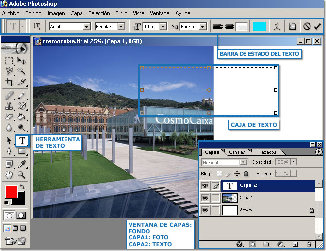 Para aprender a poner texto a nuestras imágenes, abriremos la fotografía “CosmoCaixa”.