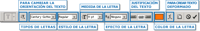 escoger el tipo de texto; y la caja de texto que es donde escribiremos.