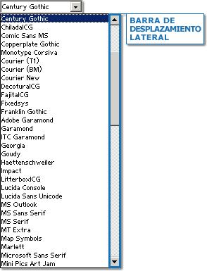 los tipos de letras con los que podemos trabajar. Utilizaremos la barra de desplazamiento