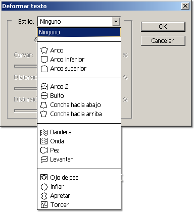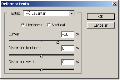 podremos escoger el % que queremos que el texto se curve y/o que tenga una distorsión